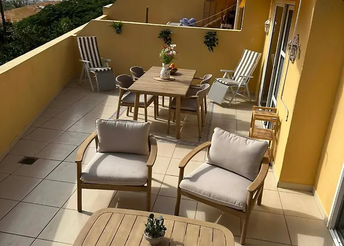 Strand La Pinta befindet sich 12 Minuten zu Fuß vom Apartment Las Brisas Seaview - Costa Adeje entfernt und ist einen Besuch wert. Auf einer Terrasse des Apartments können die Gäste entspannen und einen Ausblick auf den Garten genießen.